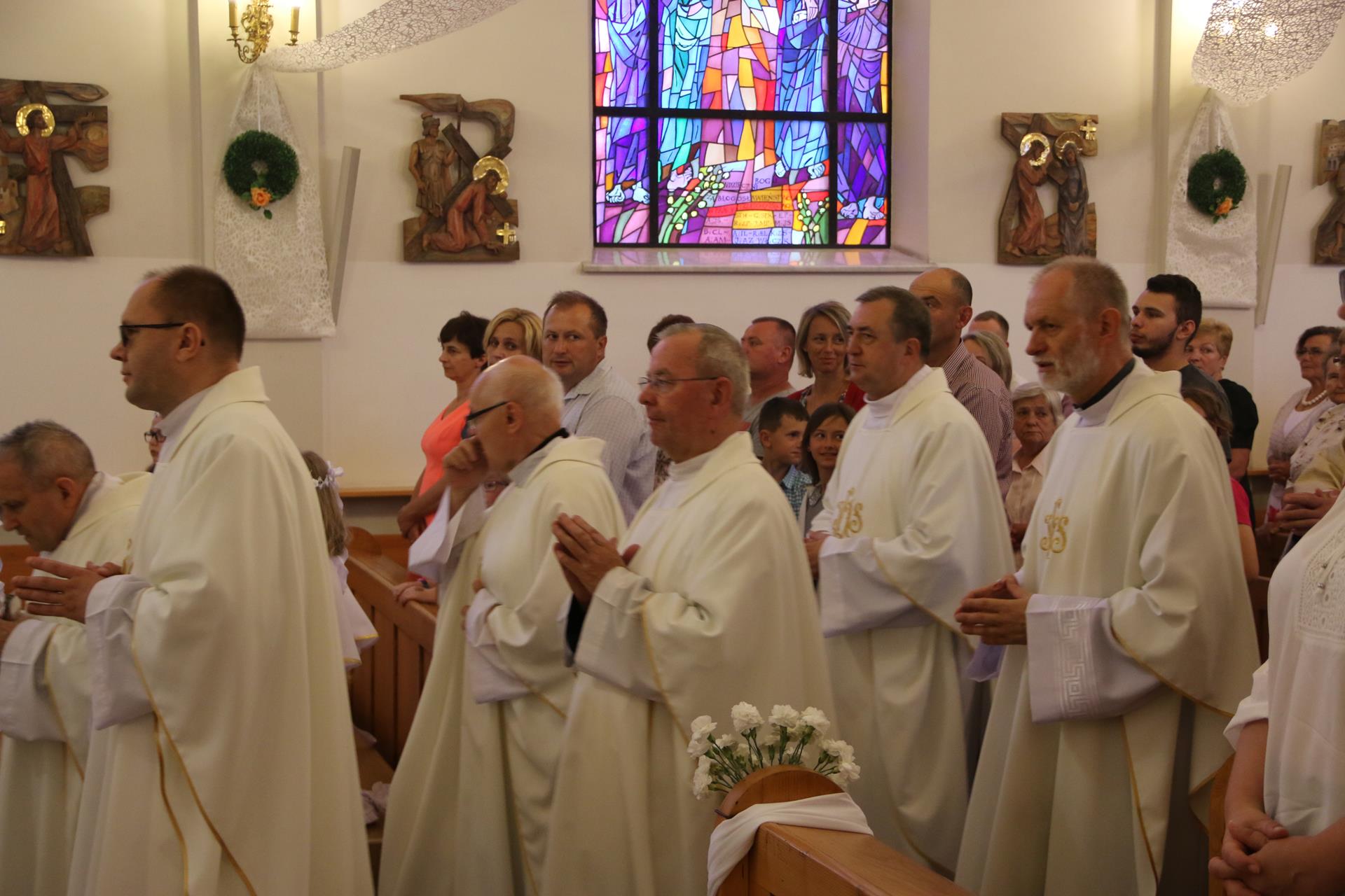 Odpust. Swego rodzaju "imieniny" parafii, kiedy czci się patrona kościoła — tak właściwie najkrócej można zdefiniować uroczystość, którą przeżywaliśmy w niedzielę 10.06. Kazania głosił w tym dniu ksiądz Zbigniew Chwaja SCJ, pochodzący ze Skrzynki długoletni misjonarz w południowej Afryce, obecnie odpowiedzialny za Sekretariat Misji Zagranicznych w naszej polskiej prowincji, a w tym roku obchodzący 25-lecie święceń kapłańskich. Sumie przewodniczył ksiądz Józef Czarny — dziekan dekanatu dobczyckiego, który swoją funkcję sprawuje od dwu lat. Msza święta z piękną oprawą muzyczną, którą zapewnił nasz chór oraz kwartet Bonjour, szczególna procesja z darami, liczne grono przybyłych kapłanów, i oczywiście procesja eucharystyczna — z figurami, sztandarami i kwiatami — to piękno tej Mszy świętej. Istotą było przyjęcie Eucharystycznego Serca Jezusa do swoich serc oraz słowa homilii, które ukazywały kult Serca Jezusowego w Kościele, ale też w naszej stadnickiej rzeczywistości i w doświadczeniu osobistym kaznodziei. I choć Mszy świętych było w tym dniu cztery, to jednak suma odpustowa pozostała sumą i ona najlepiej zebrała wszystko, co w tym dniu powinno wybrzmieć i czego powinniśmy doświadczyć.