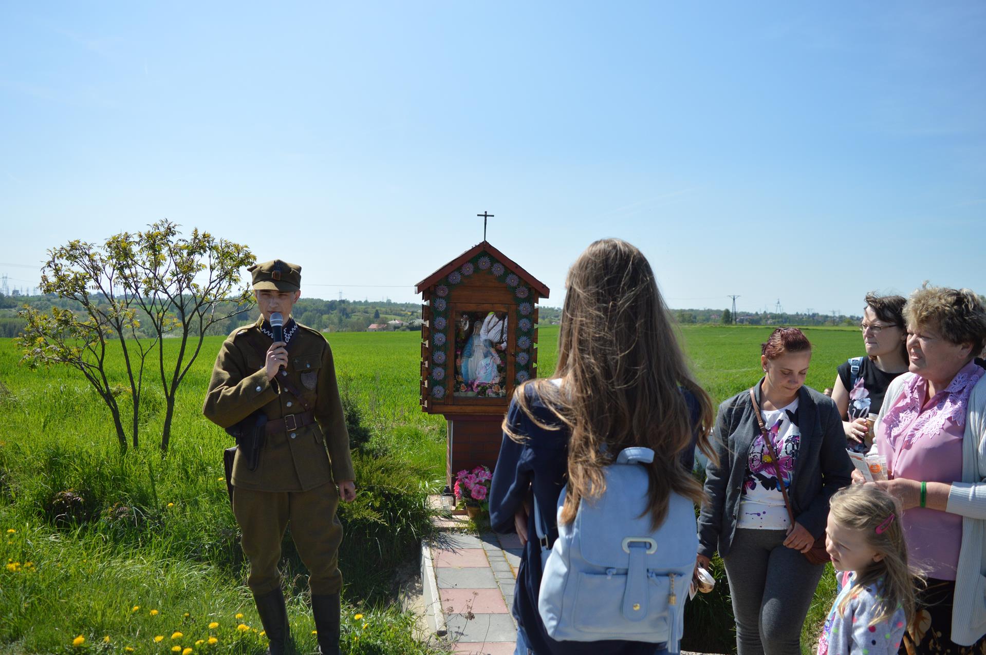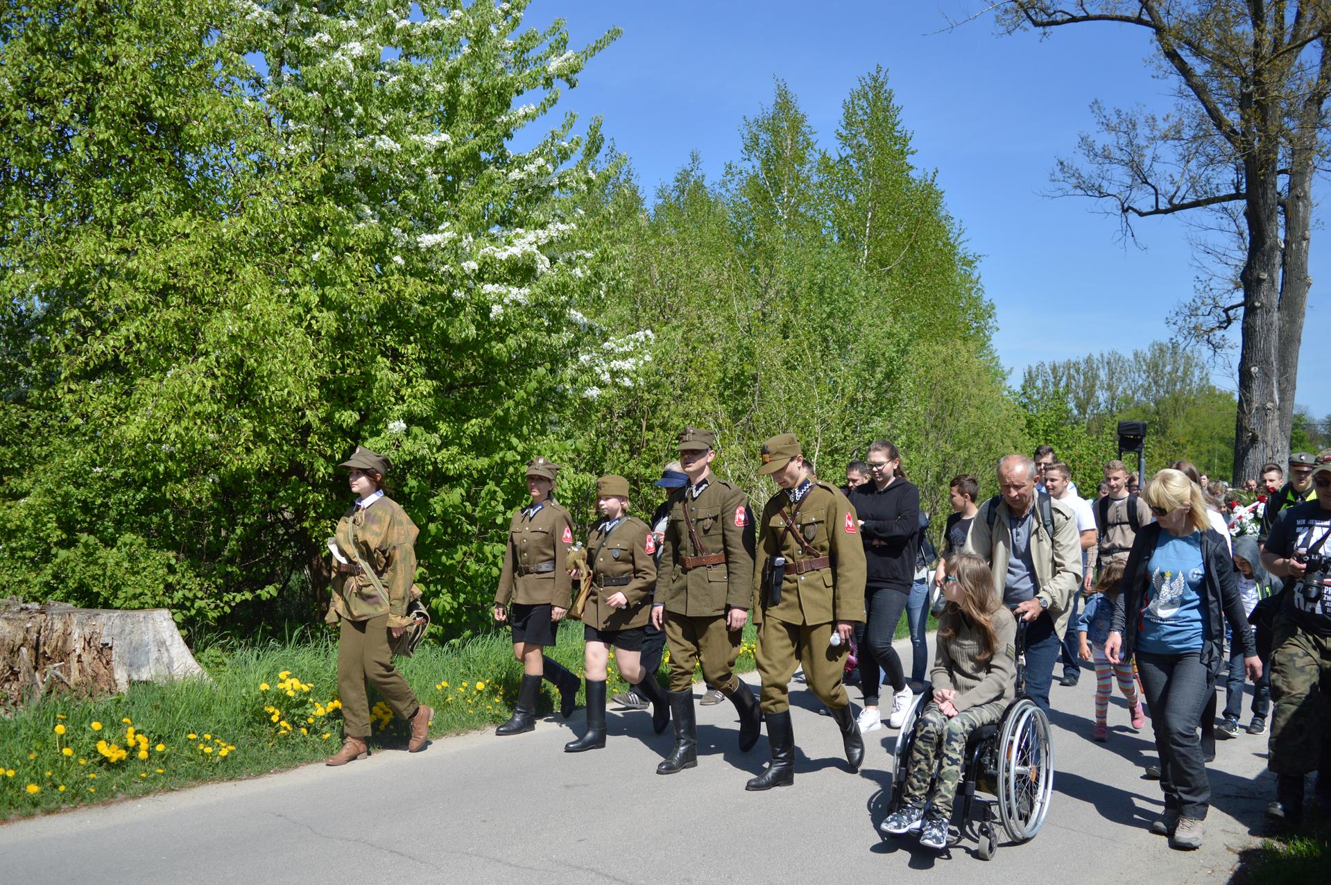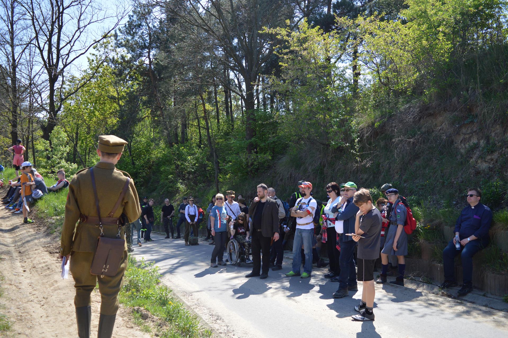 Po mszy świętej rozpoczęła się malownicza wędrówka łąkami i wzgórzami parafii Pliszczyn. Pomodliliśmy się na cmentarzu przy symbolicznej mogile Czesława Jabłońskiego — "Bąka", a następnie wędrowaliśmy szlakiem wytyczonym przez organizatorów. Grupy rekonstrukcyjne, fachowa oprawa, wiele informacji historycznych oraz festyn w parku u księży sercanów to tylko niektóre mocne punkty tej części naszego wyjazdu. Niektórzy z nas wprawiali się w strzelaniu, we wchodzeniu na 20-metrowe drzewo i zjeździe na tyrolce, a wszystko przy zapachach wojskowej grochówki i pieczonych kiełbasek.