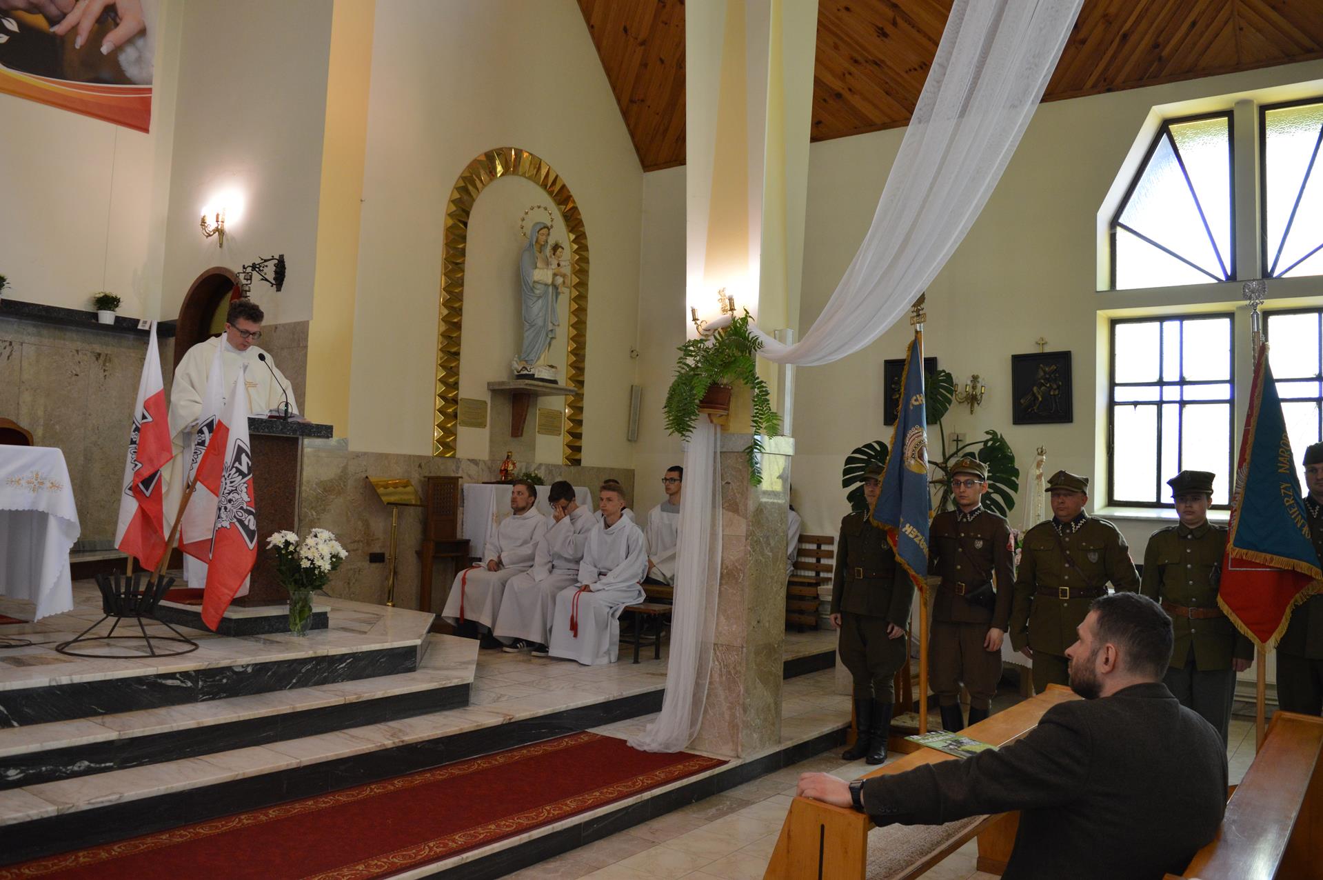 Podróż dzięki sprawności naszego pana kierowcy minęła bardzo szybko; gdy zajechaliśmy do Pliszczyna, daliśmy się na szybką kolację i nocny spacer. Kolejny dzień rozpoczęliśmy bardzo wypoczynkowo, bo można było spać aż do śniadania, które było o 900. Godzina 1100 to rozpoczęcie Mszy świętej w kościele parafialnym w Pliszczynie, która odprawiana była w intencji wspomnianego żołnierza wyklętego oraz mieszkańców pobliskich wiosek, którzy ukrywali partyzantów w tamtych trudnych czasach.