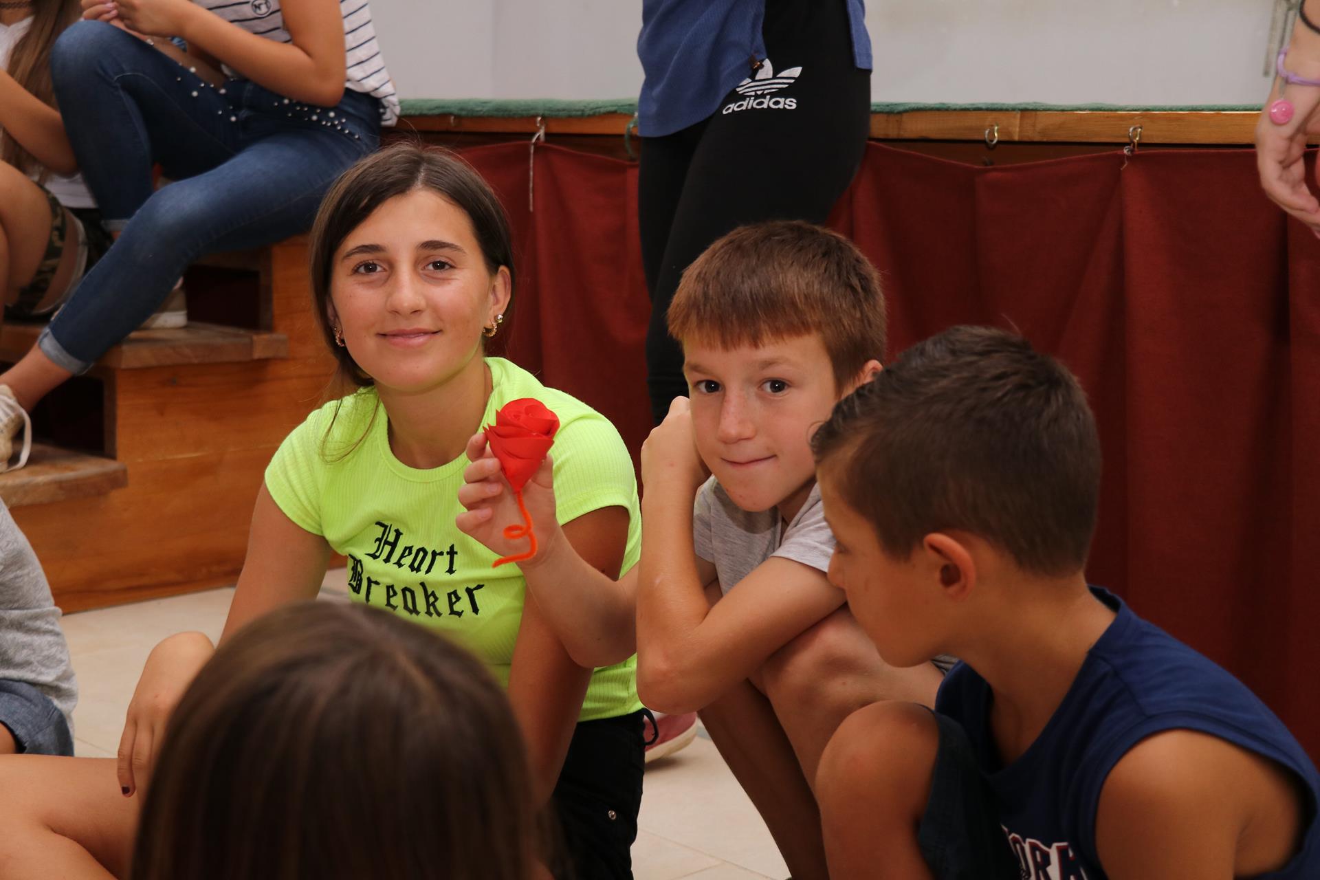 Pierwszy jej tydzień spędziliśmy w Boriç, gdzie każdego ranka czekała na nas grupa około stu dzieci mieszkających w tej okolicy. Omawialiśmy z nimi przypowieści Pana Jezusa (o dobrym Samarytaninie, o miłosiernym ojcu), po których brały udział w zajęciach nawiązujących do przewodniego tematu dnia. Było dużo tańca i zabaw zespołowych. Przygotowywaliśmy też warsztaty. Na tych plastycznych udało nam się stworzyć piękne róże z papieru. Nasi podopieczni mieli za zadanie po powrocie do swoich domów wręczyć je rodzicom w podzięce za ich miłość i troskę — nawet gdy czasami przypominamy im synów marnotrawnych. Uczyliśmy się też języka angielskiego. Miałam przyjemność usłyszeć od każdego malucha kilka słów o sobie — jak ma na imię czy ile ma lat. Rozmawialiśmy o czynnościach będących naszym hobby oraz tych, których dopiero chcemy się nauczyć.