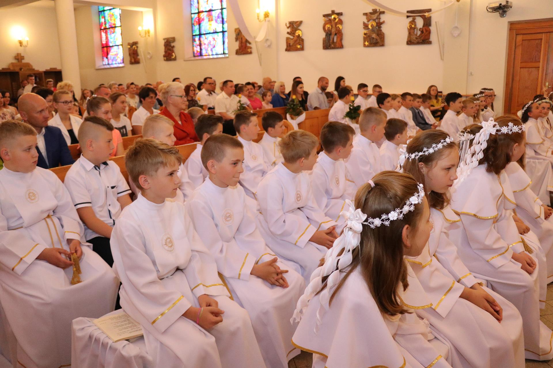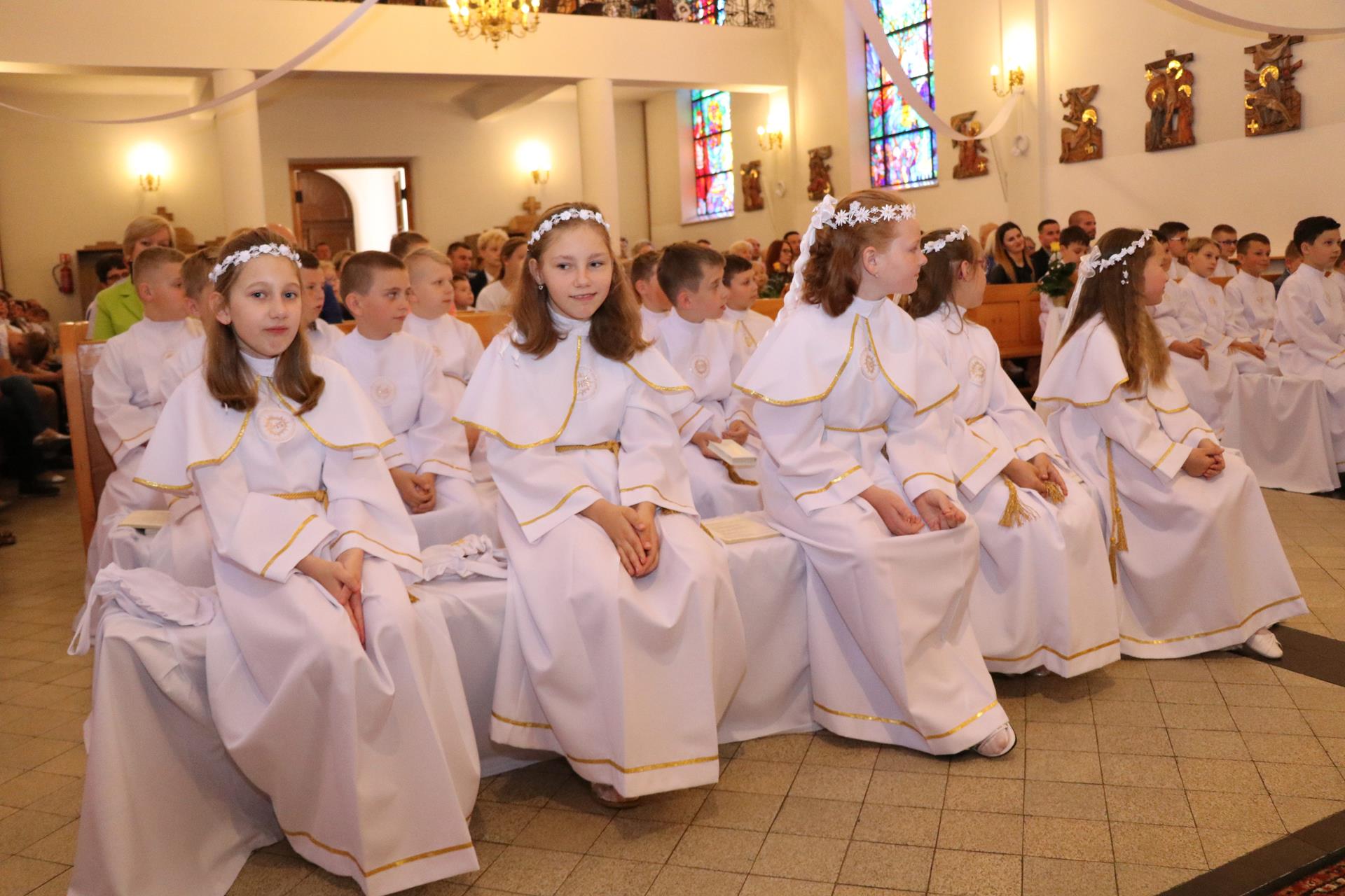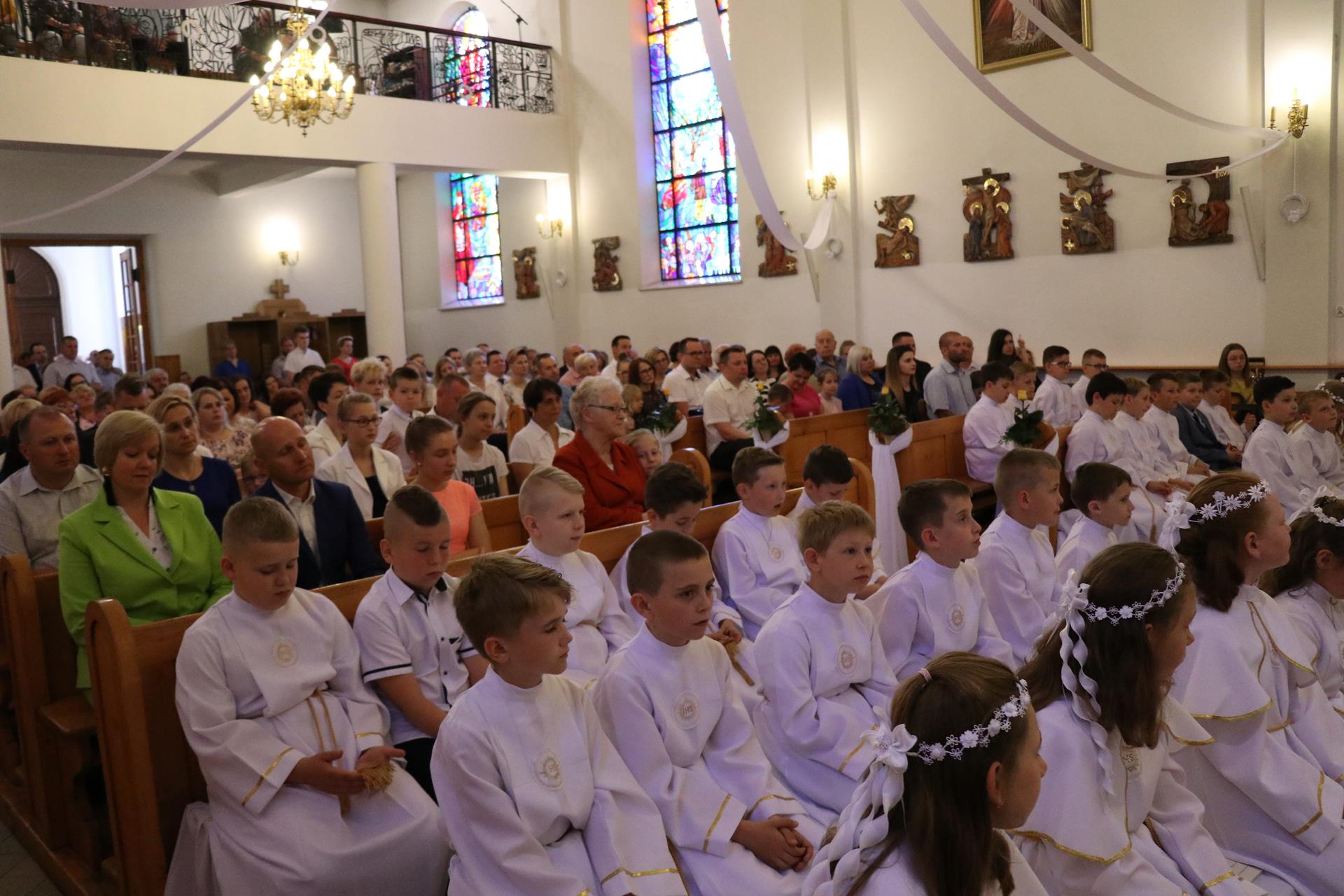 Ubiegły rok — jeśli chodzi o pierwszą Komunię świętą — był szczególny. Duża liczba dzieci spowodowała, że uroczystość odbyła się w dwu grupach. Rocznica pierwszej Komunii świętej, która odbyła się 02.06., zgromadziła już wszystkie dzieci razem. Czterdziestoosobowa grupa dzieci wypełniła pierwsze ławki kościoła, by wspominać, ale też obiecać Jezusowi, że chcą iść z nim przez życie.