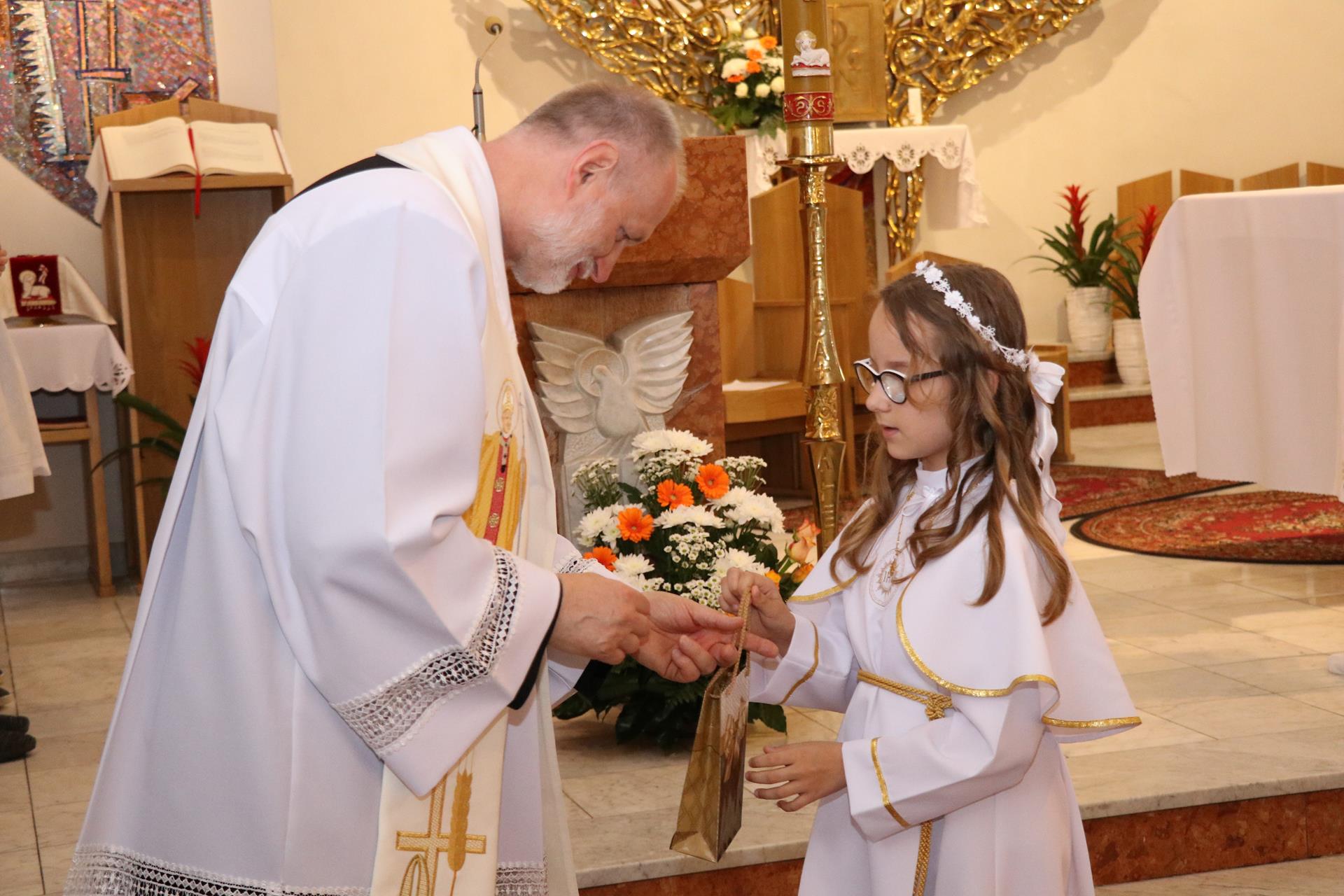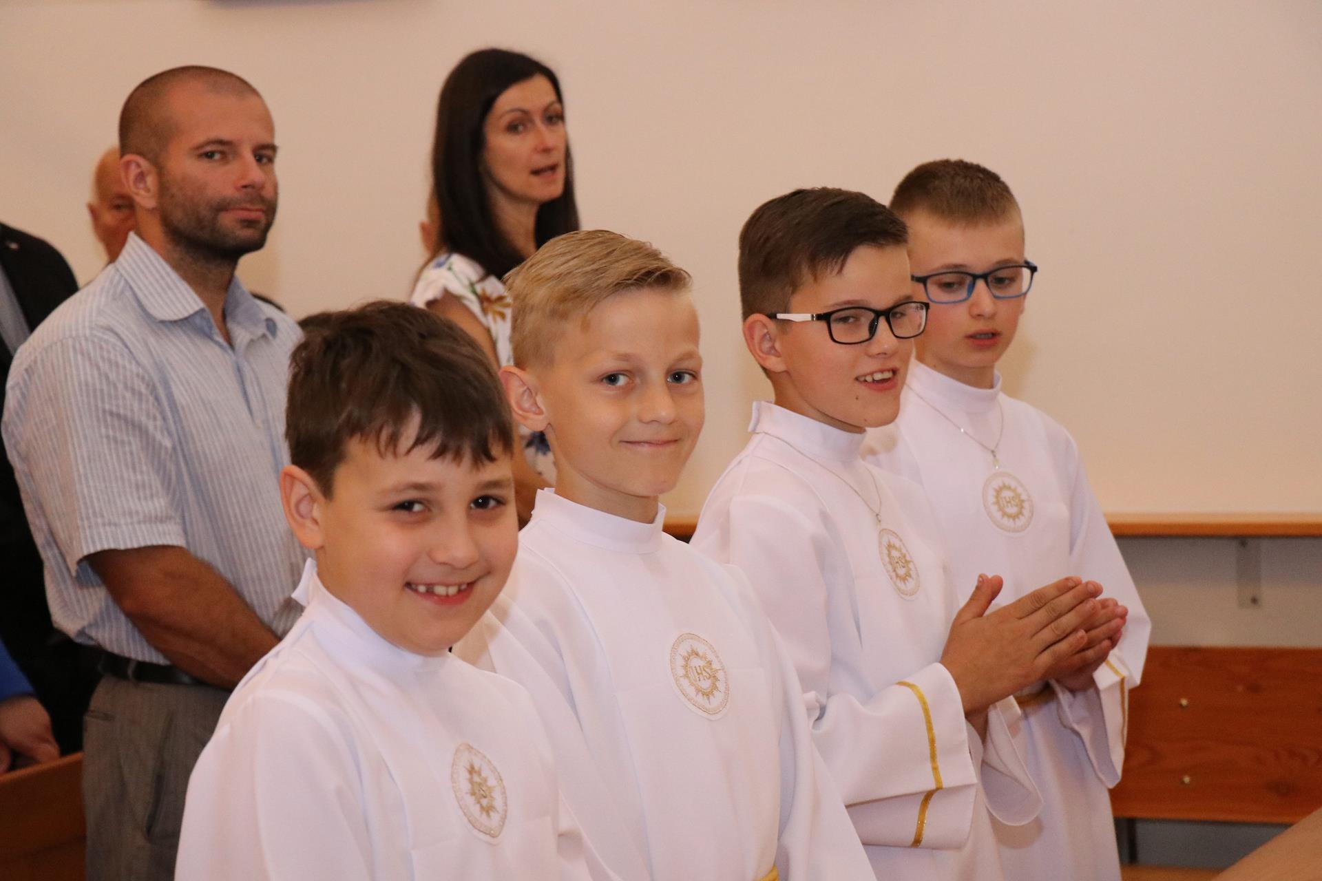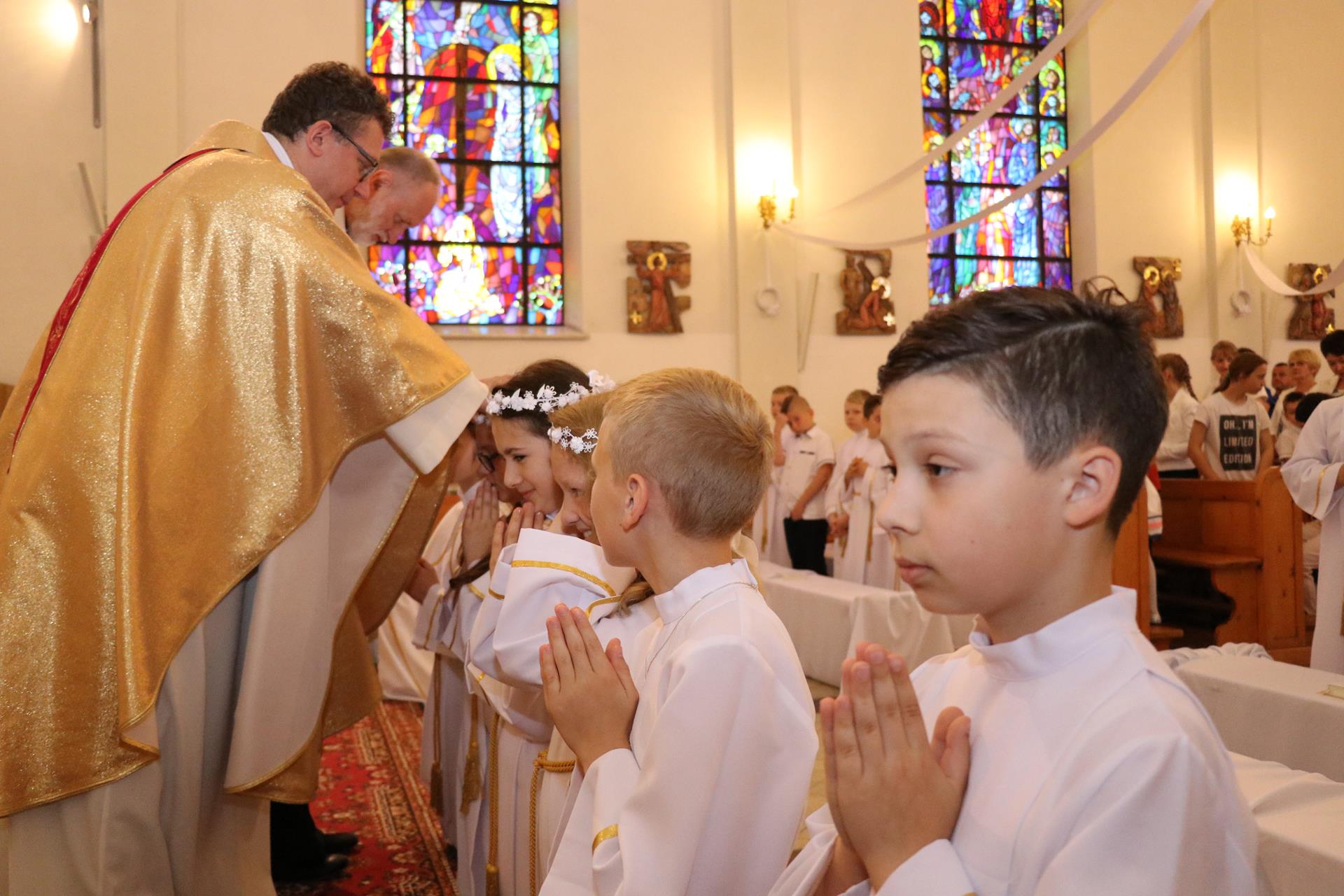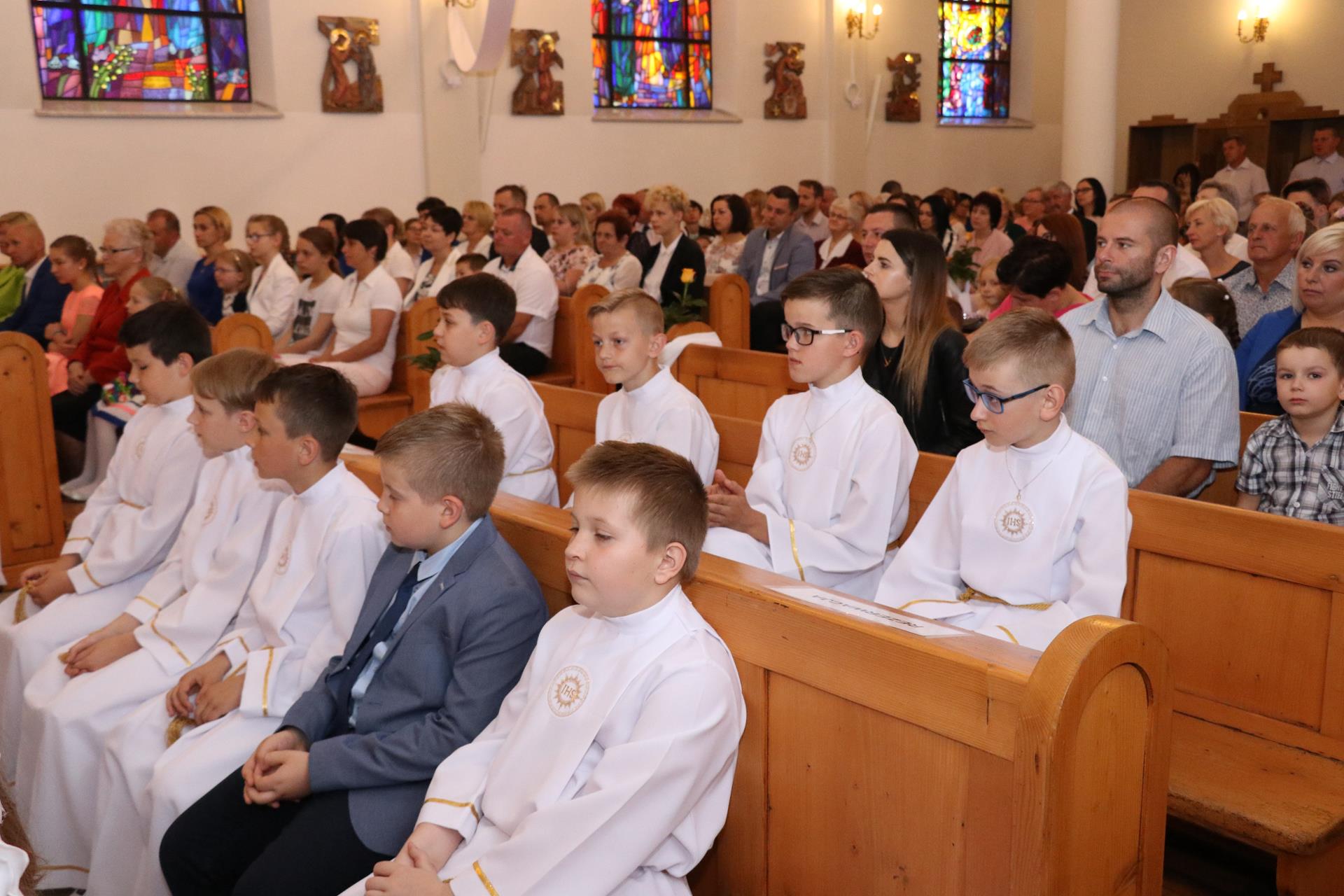 Ubiegły rok — jeśli chodzi o pierwszą Komunię świętą — był szczególny. Duża liczba dzieci spowodowała, że uroczystość odbyła się w dwu grupach. Rocznica pierwszej Komunii świętej, która odbyła się 02.06., zgromadziła już wszystkie dzieci razem. Czterdziestoosobowa grupa dzieci wypełniła pierwsze ławki kościoła, by wspominać, ale też obiecać Jezusowi, że chcą iść z nim przez życie.