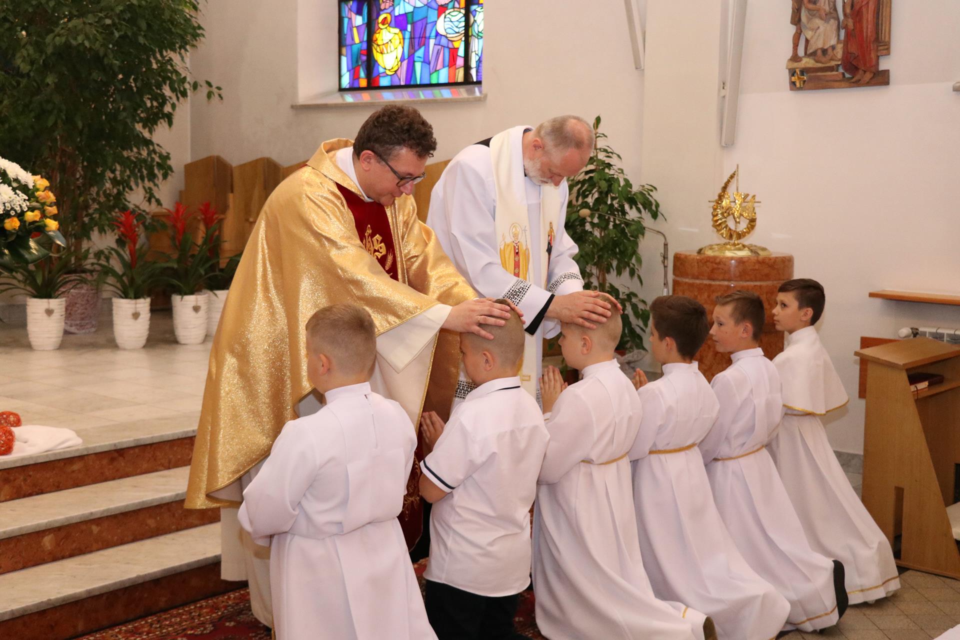 Po Komunii świętej, w ramach dziękczynienia, dzieci oddały się Najświętszemu Sercu Pana Jezusa, które patronuje naszej parafii. Ostatnim elementem uroczystej Mszy świętej było błogosławieństwo dzieci, które przypomniało to, co przeżyli apostołowie, gdy Jezus nad nimi wyciągnął ręce i błogosławił przed swoim odejściem do nieba.