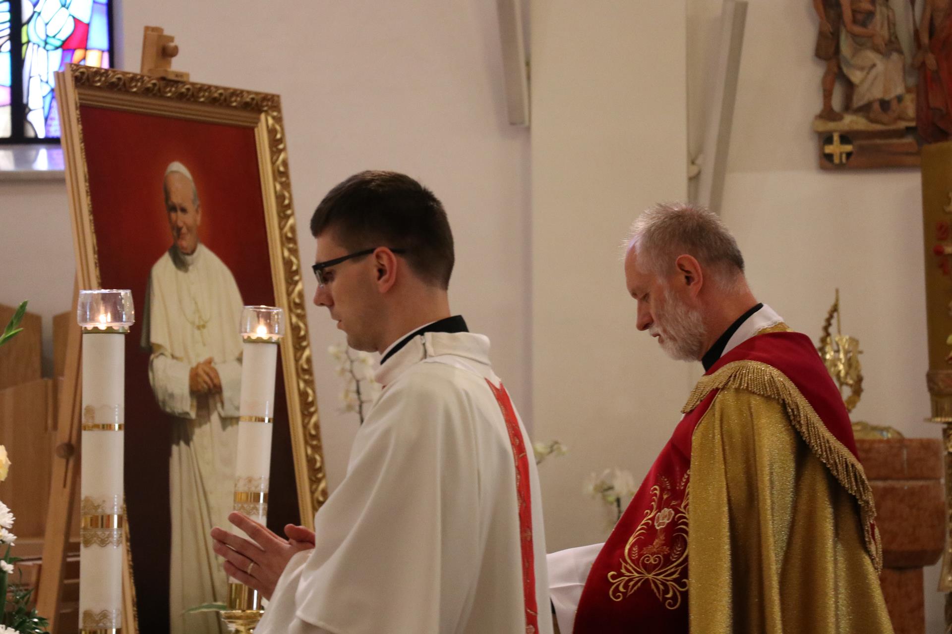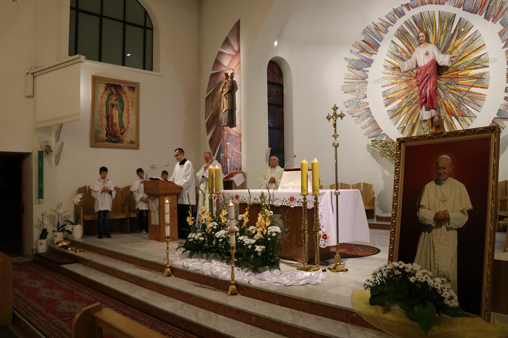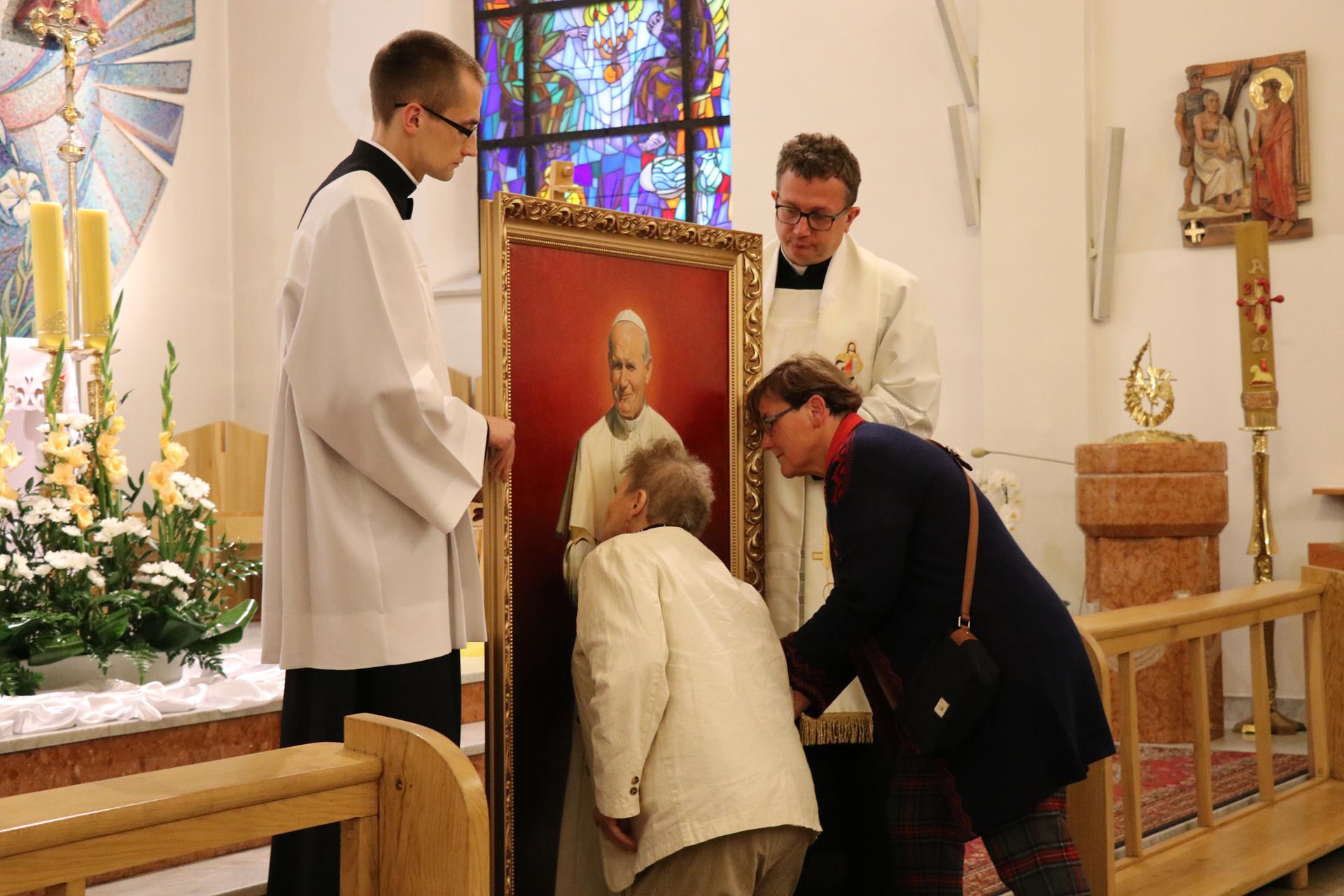 Na wniosek rady parafialnej od wielu miesięcy powstawał w jednej z lubelskich pracowni obraz świętego papieża Jana Pawła II, który miał być dla wszystkich widomym znakiem i przypomnieniem tamtych wydarzeń sprzed lat. Ale także początkiem publicznej czci świętego Jana Pawła II w naszym kościele. W wigilię uroczystości narodzenia świętego Jana Chrzciciela przybyli parafianie, Wyższe Seminarium Misyjne na czele z rektorem — księdzem Leszkiem Poleszakiem SCJ, oraz zaproszony specjalnie na tę okazję ksiądz Józef Gaweł SCJ — wieloletni wychowawca i przełożony prowincji, a obecnie obchodzący złoty jubileusz kapłaństwa — wszyscy zebraliśmy się, by oddać cześć Bożemu Sercu w nabożeństwie czerwcowym i Mszy świętej ku czci świętego Jana Pawła II.