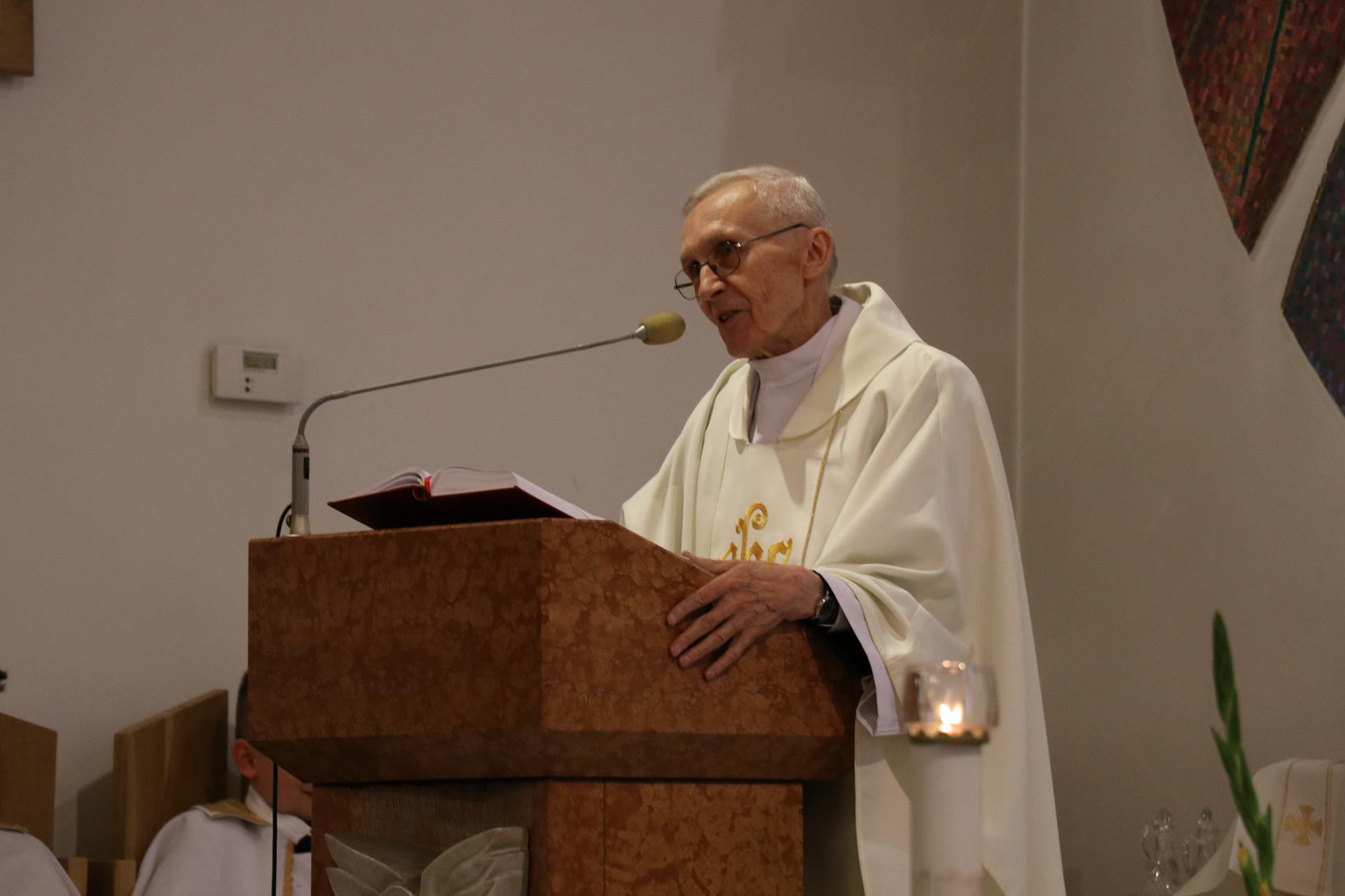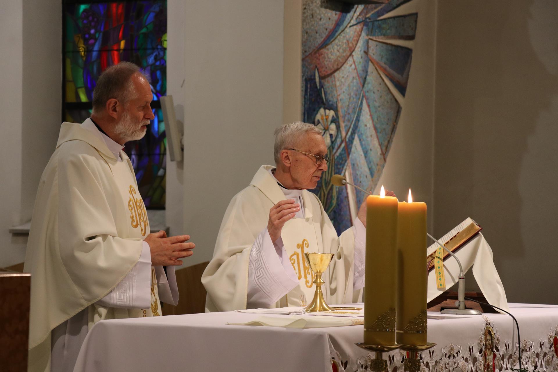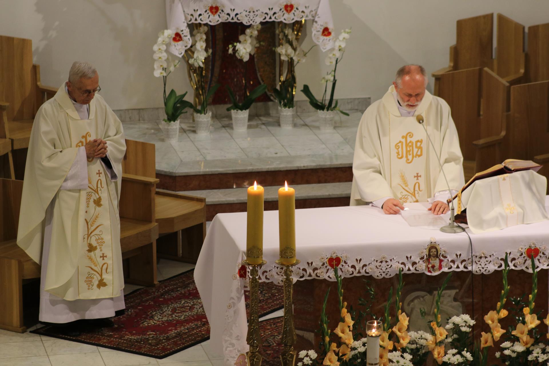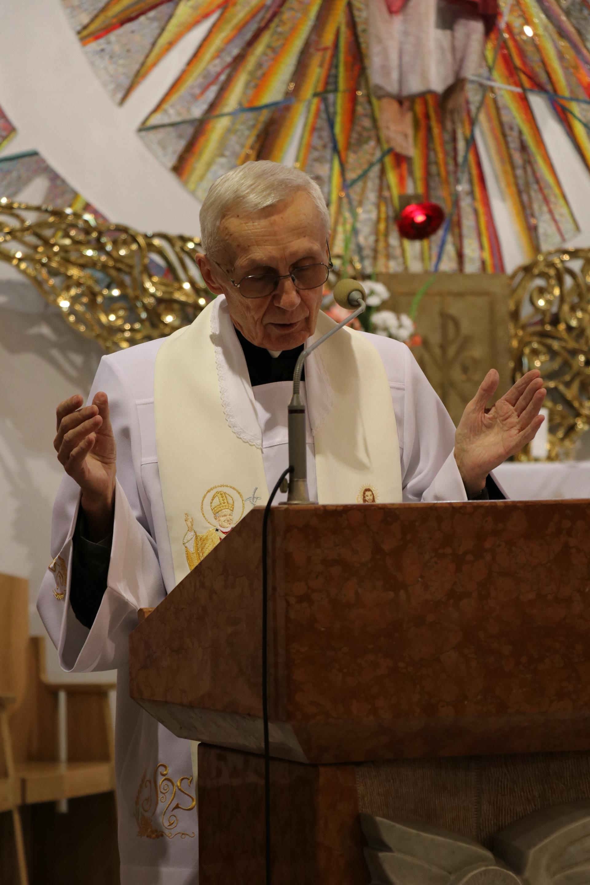 Rodzice dzieci pierwszokomunijnych oraz same dzieci byli tymi, którzy wprowadzili obraz do świątyni; poświęcenia dokonał ksiądz Józef, a następnie wraz z Janem Pawłem w jego wizerunku czciliśmy Serce Boże przez śpiew litanii. Msza święta odprawiona była pod przewodnictwem księdza proboszcza Kazimierza Lewandowskiego SCJ. W homilii złoty jubilat, wracając do chwil pobytu kardynała Wojtyły w Stadnikach, przypomniał główne przesłanie jego homilii mówiące o kulcie Serca Jezusowego, roli naszego zgromadzenia w krzewieniu tego kultu, oraz swoiste "proroctwo", jakie wypowiedział ówczesny przełożony księży sercanów, które miało dotyczyć przenosin księdza kardynała do Warszawy, by objąć urząd po kardynale Stefanie Wyszyńskim. Po ponad czterech miesiącach okazało się, że kardynała Karola Wojtyłę przyszło nam rzeczywiście pożegnać z naszej krakowskiej ziemi, bo został wybrany papieżem Janem Pawłem II.